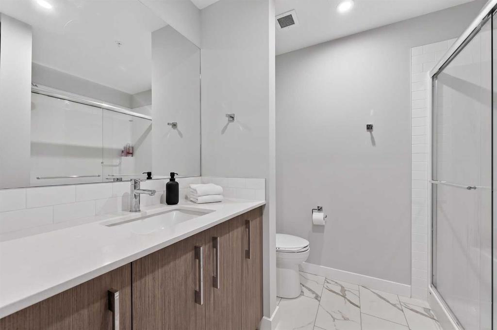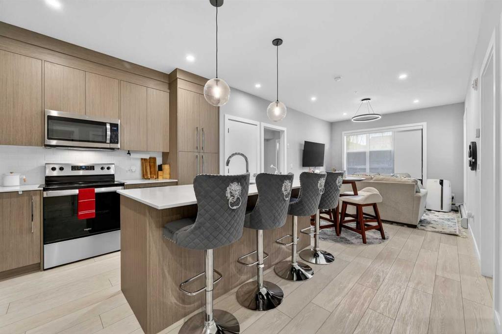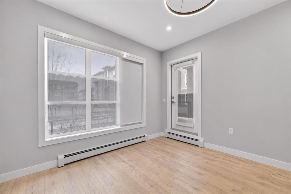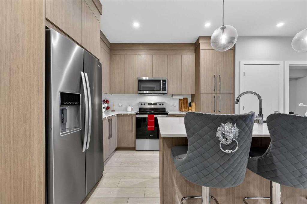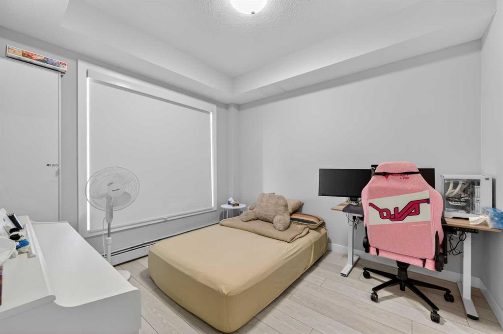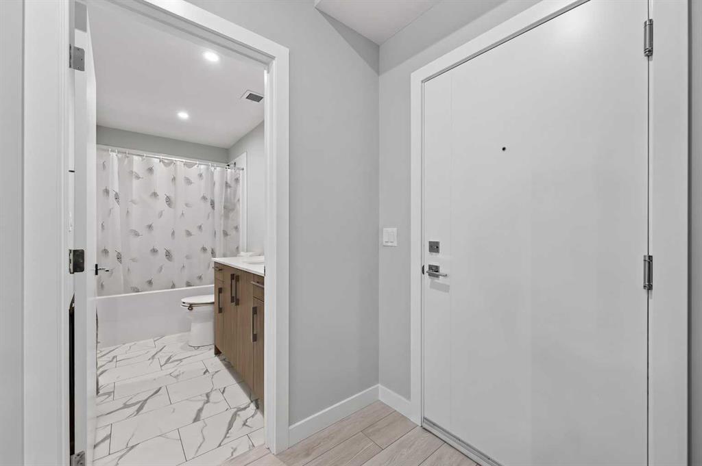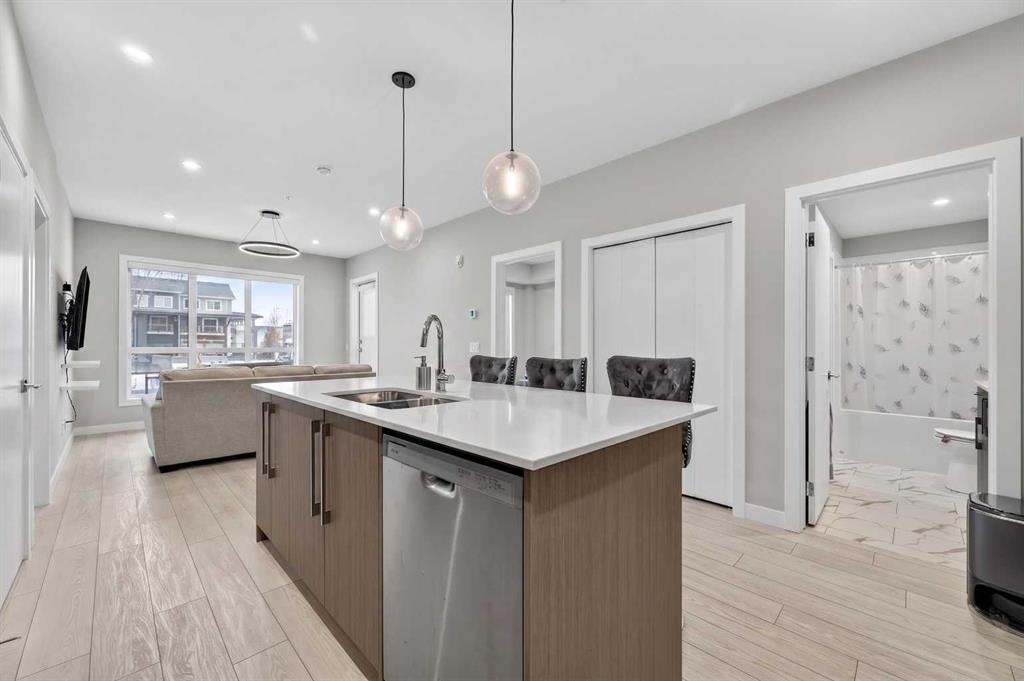 Welcome to this beautiful main-floor West-facing unit, offering over 800sqft of thoughtfully designed living space, complete with underground titled parking. This stunning 2 bed, 2 bath condo features wide plank flooring throughout with open concept living. A stylish chef-inspired kitchen featuring stainless steel appliances, white subway tile backsplash, bright quartz countertops, a pantry, and a kitchen island. A spacious primary bedroom comfortably fits a king-sized bed and includes a walk-through closet...