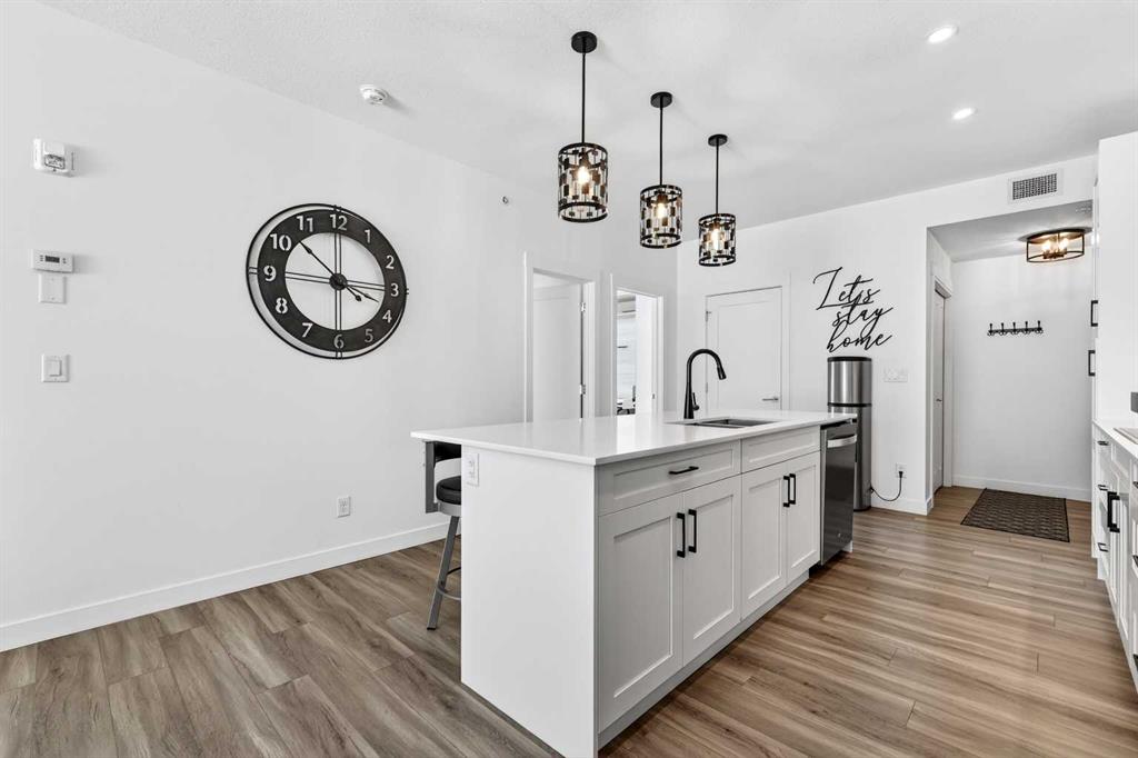 Auburn Rise is a newer built condo building built by Logel Homes in the amazing south-east Calgary community of Auburn Bay. Large size, upgrades and special features make this unit one of the better condos buys available right now. A titled tandem underground parking stall guarantees you can keep two vehicles safe and warm. From there you can either take the very short climb up one flight of stairs directly adjacent to your stall right to this ground floor unit or take the buildings elevator as intended. ...