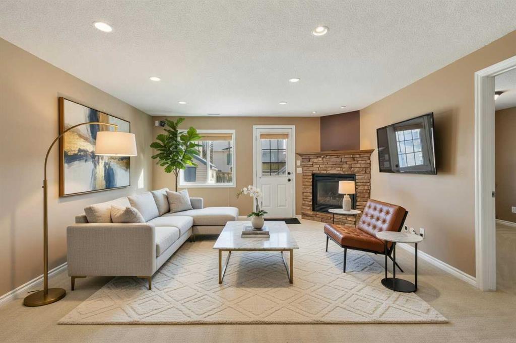 Fully finished walkout basement with a spacious recreation room, gas fireplace, full bathroom with heated tile floors, and a fourth bedroom. This home offers over 2,300 sq ft of total developed living space, with a total of 4 bedrooms, 3.5 bathrooms, and central A/C for year-round comfort. The main floor features a bright and inviting family room, a dedicated dining area, and a well-appointed kitchen complete with stainless steel appliances, an upgraded sink, eat-up bar, and a convenient walkthrough pantr...