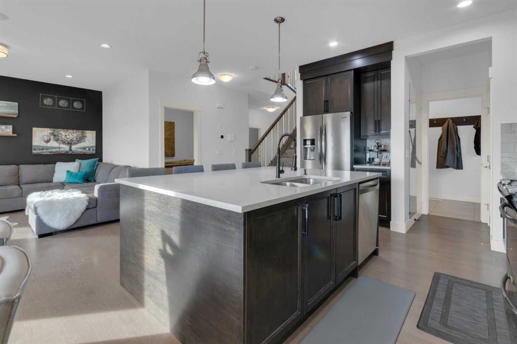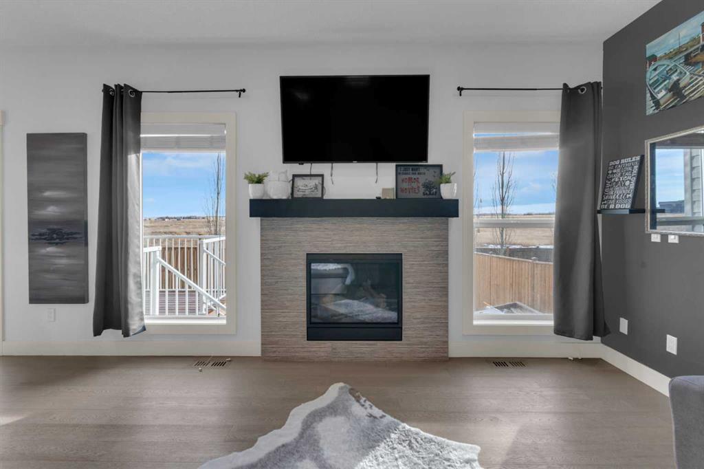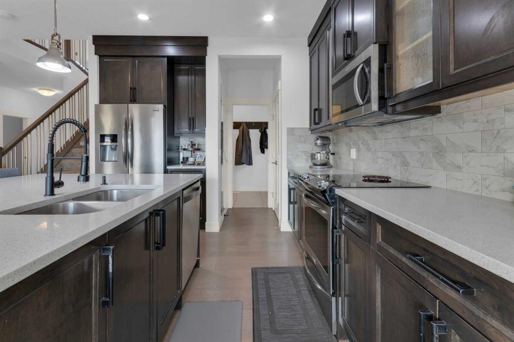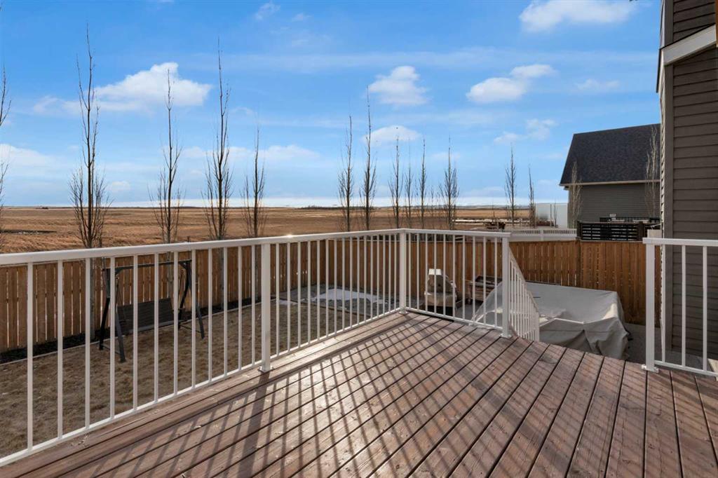 WELCOME to the town of CARSTAIRS! Commute to Airdrie or Calgary or work from home - come & check this property out! This home has so much to offer for a large & growing family! If the quiet is what you desire this is the property for you - SOUTH FACING lot backing on to field for added privacy & peacefulness. As you approach the quaint front porch you are greeted with a generously sized foyer, 9 ft ceilings, engineered hardwood FLOORS & a large, open floor plan. The kitchen boasts CEILING HEIGHT cabine...