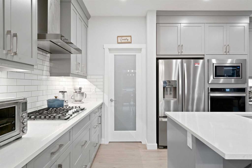 Welcome to your dream home in the vibrant community of Seton! This beautifully designed 2200+ sq. ft. detached family home sits on a large lot with a long front driveway and an oversized double garage, offering the perfect blend of space and functionality. From the moment you arrive, the covered front entrance invites you inside. Step into a bright, open-concept main floor where warm luxury vinyl plank flooring flows throughout. At the heart of the home is a grand chef’s kitchen with extensive upgrades, f...