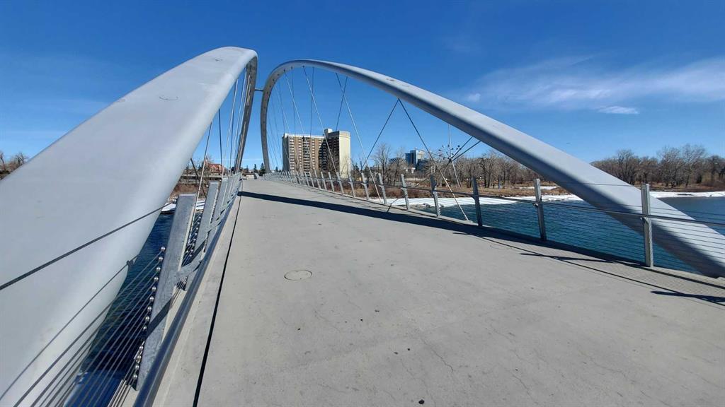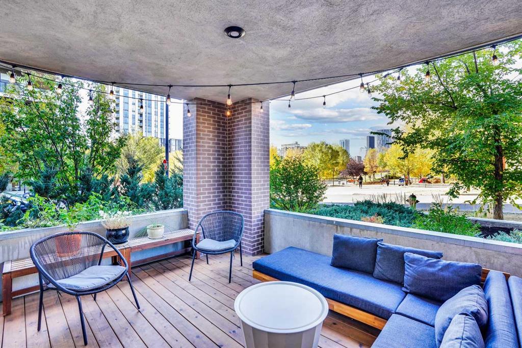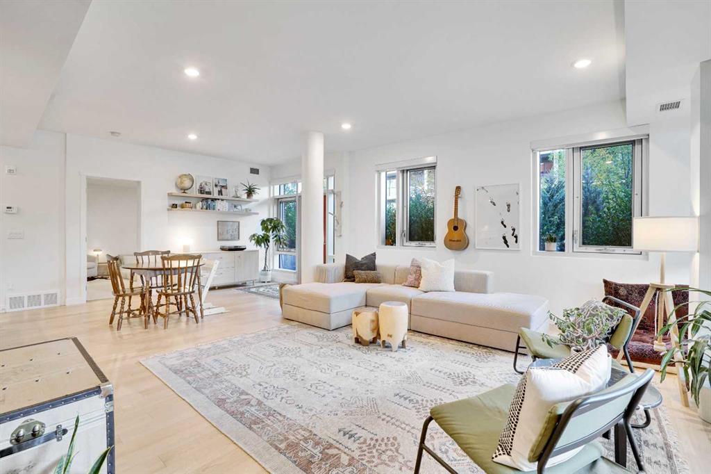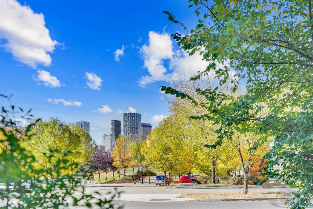 Exceptional opportunity in an ultimate inner-city location. Nestled park side in the heart of Bridgeland, across from Murdoch Park. Like new, corner unit with direct access features a great contemporary vibe. Open concept, spacious rooms and a great covered patio with lovely views of the Park and Downtown. Living is easy in this fresh and bright 2 bedroom plus den with 2 full baths. Enjoy hardwood floors, big beautiful windows, a sunny living room, large dining room and an airy kitchen with plenty of natur...