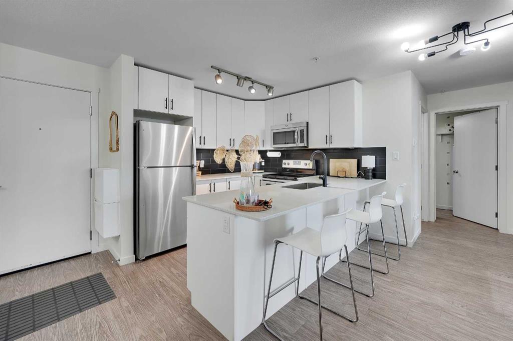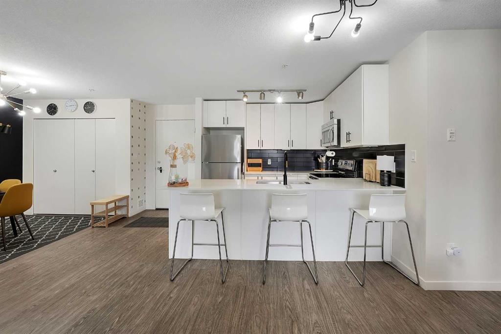 Step into this bright, open-concept sanctuary where modern comfort meets an amenity-rich lifestyle at McCall Landing. This meticulously maintained home welcomes you with a seamless blend of durable laminate flooring and plush carpet, elevated by a suite of upgrades that truly set it apart. The kitchen features upgraded new backsplash, a gourmet sink, and sleek high-arc faucets. The bathroom is refreshed with a new bathtub and contemporary fixtures. Designer lighting throughout the dining, living, and sleepi...