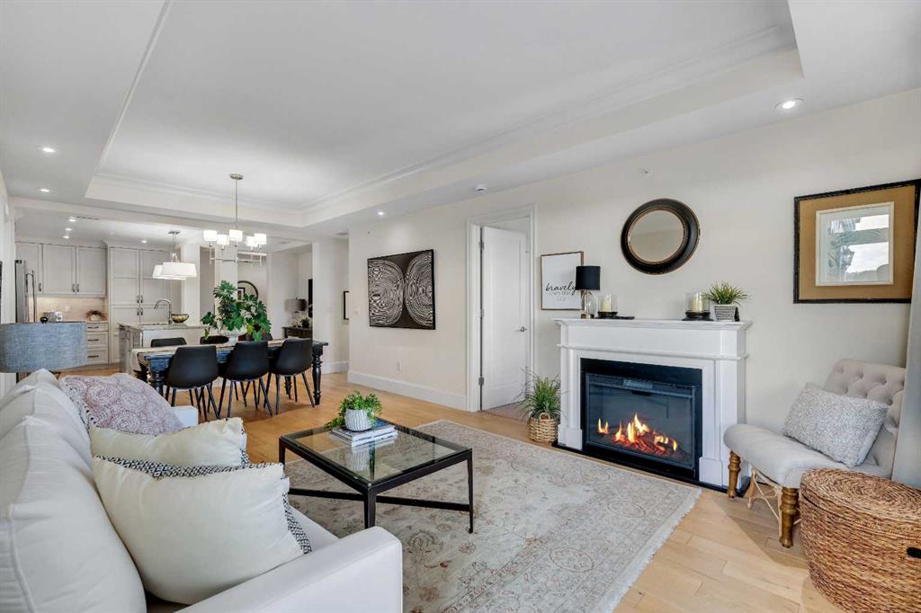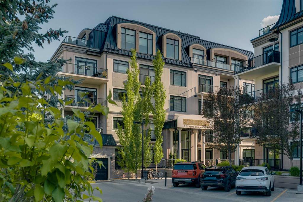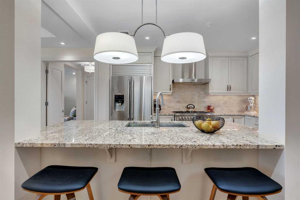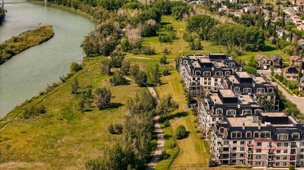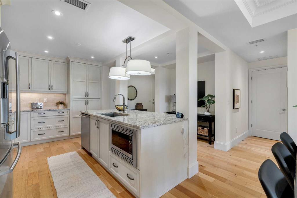 Experience luxury living in this spacious 2-bedroom plus den condo in the prestigious, concrete-built Champagne residence. Located on the fourth floor, this south-facing unit offers views of the Bow River to the west and over 1,250 sq ft of thoughtfully designed living space. The open-concept layout includes a beautiful gourmet kitchen featuring full-height warm white cabinetry, granite countertops, a large island with seating, and high-end stainless steel appliances including a gas range. The kitchen flows...
