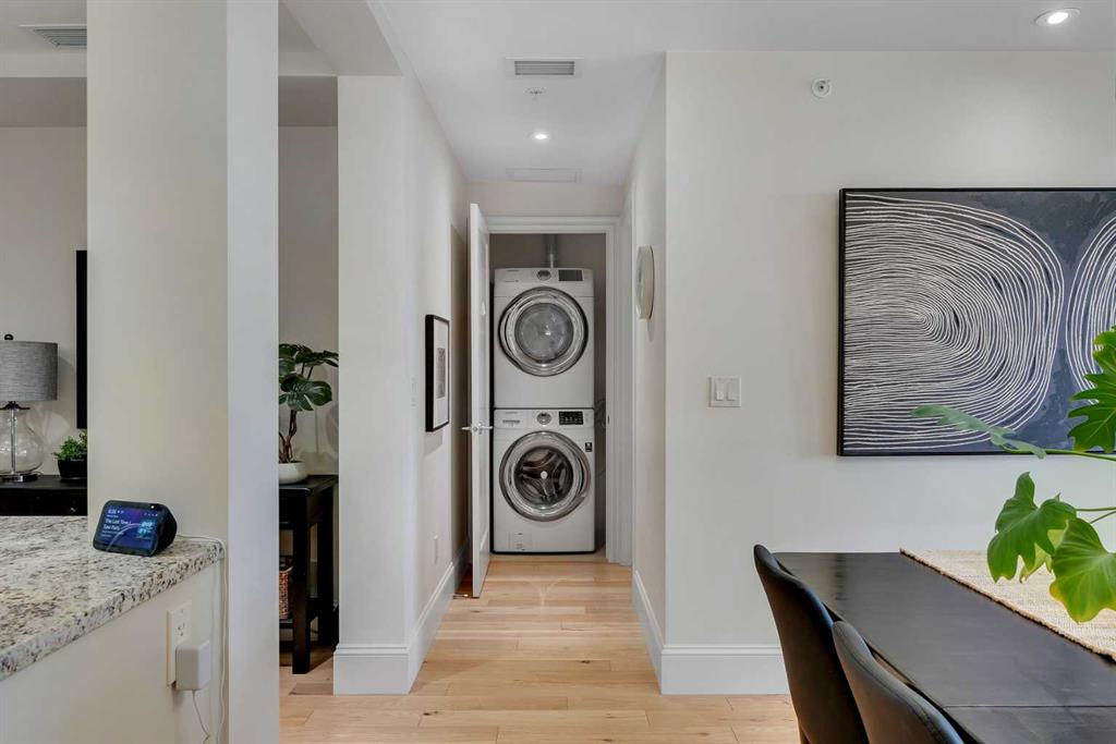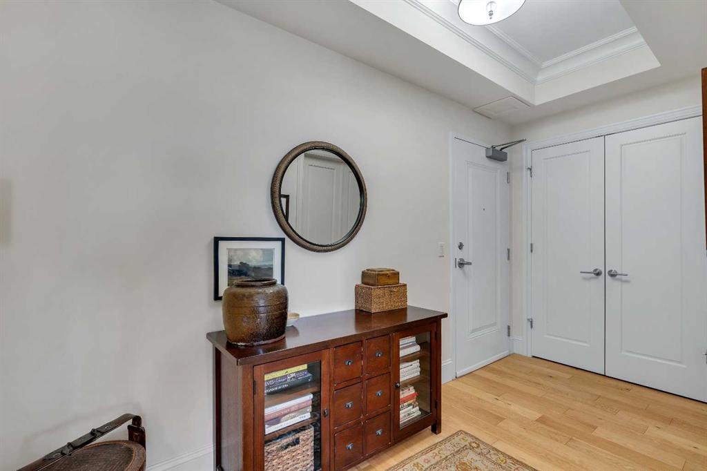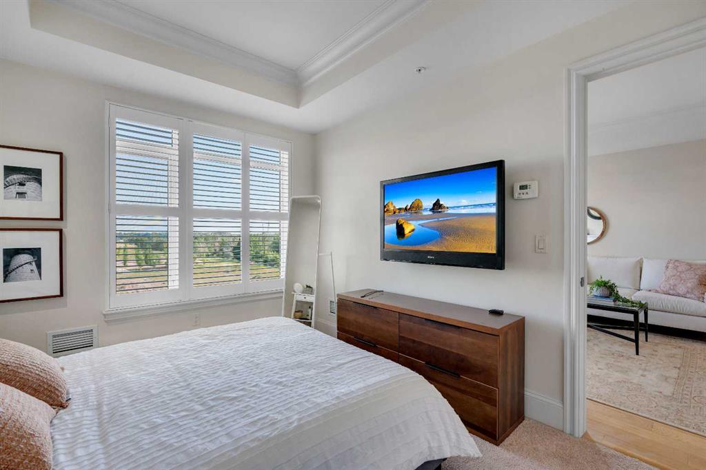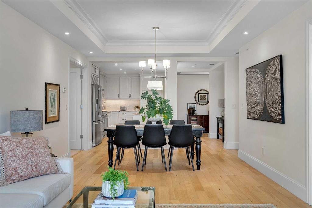 Experience luxury living in this spacious 2-bedroom plus den condo in the prestigious, concrete-built Champagne residence. Located on the fourth floor, this south-facing unit offers views of the Bow River to the west and over 1,250 sq ft of thoughtfully designed living space. The open-concept layout includes a beautiful gourmet kitchen featuring full-height warm white cabinetry, granite countertops, a large island with seating, and high-end stainless steel appliances including a gas range. The kitchen flows...