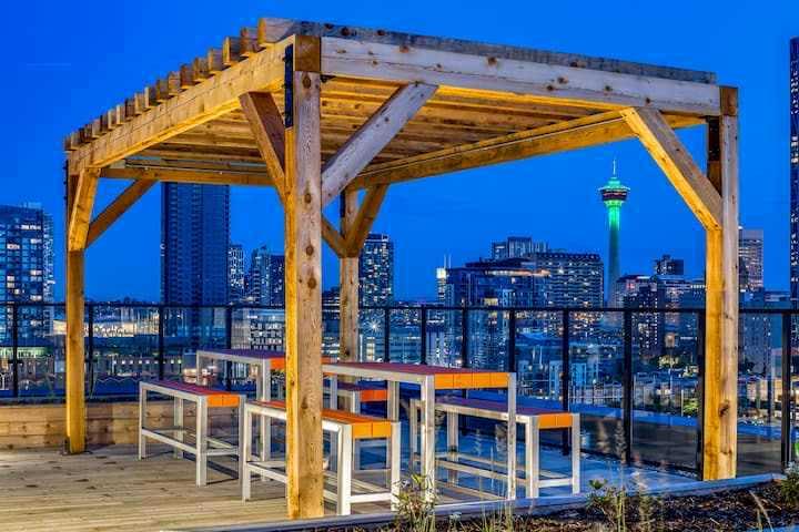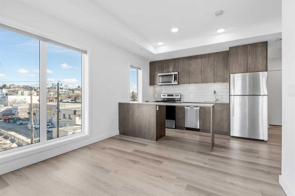 This stunning top-floor Northwest corner condo in the sought-after Era building offers 640 sq. ft. of stylish living with 2 bedrooms, 2 bathrooms, and sweeping downtown views. Flooded with afternoon light, it’s an ideal space for contemporary urban living in the heart of Bridgeland. The bright, open layout seamlessly connects the kitchen, dining, and living areas, creating a space that’s perfect for entertaining or enjoying a cozy night in. Large windows frame the skyline and fill the home with natural ligh...