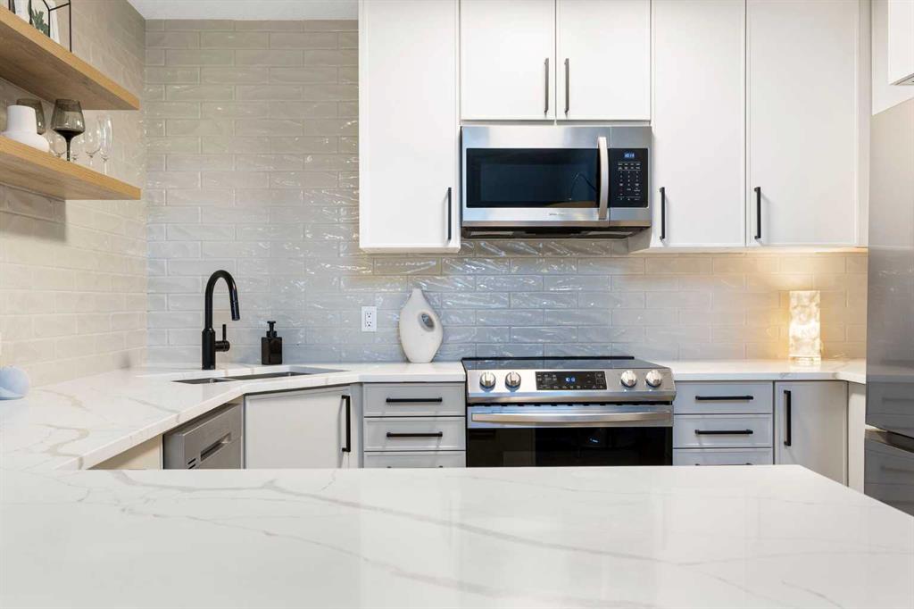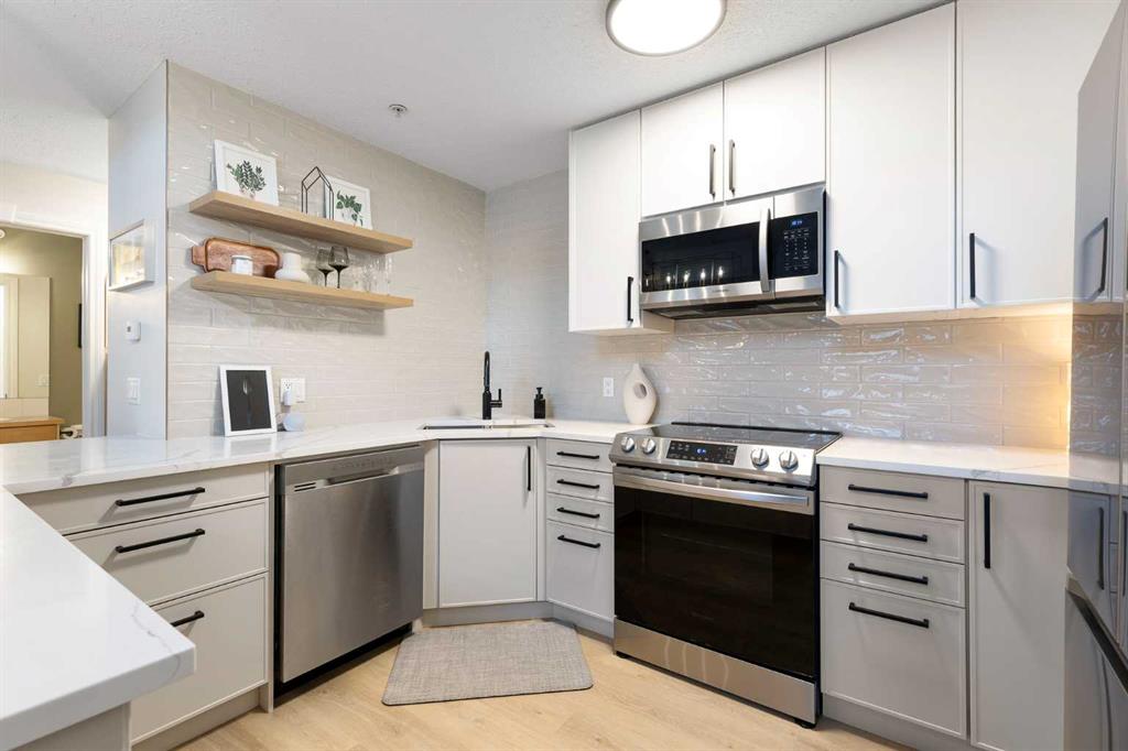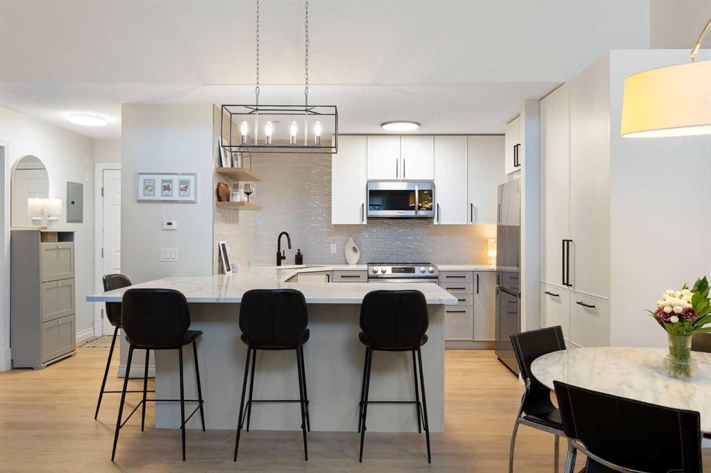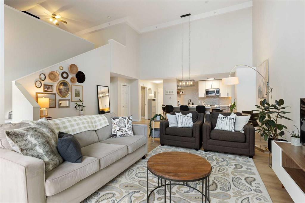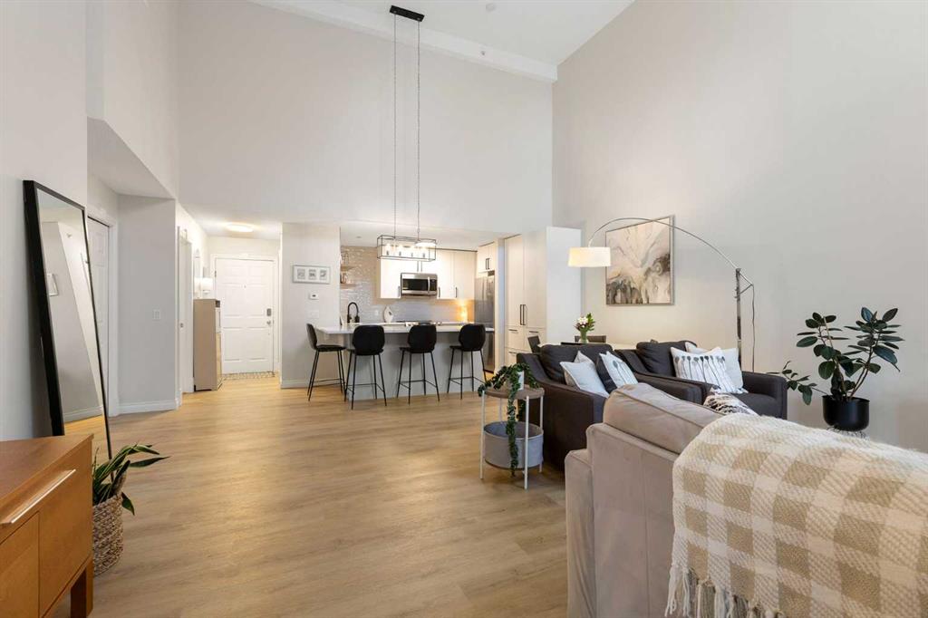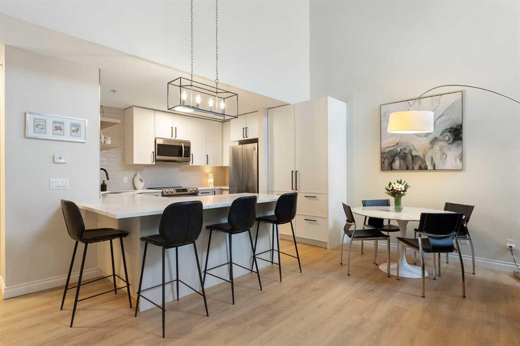 You will find exceptional value in this extensively renovated, 1 bedroom + loft, 2 bathroom condo in South Calgary! Featuring 1,214 sqft of space, this spacious top floor condo is full of high quality renovations and upgrades. As soon as you enter the front door, you will immediately notice the 17-foot ceilings, big windows offering plenty of natural sunlight, and vinyl plank flooring throughout the entire main floor. Next, you will find a beautifully renovated kitchen featuring new cabinets, quartz counter...