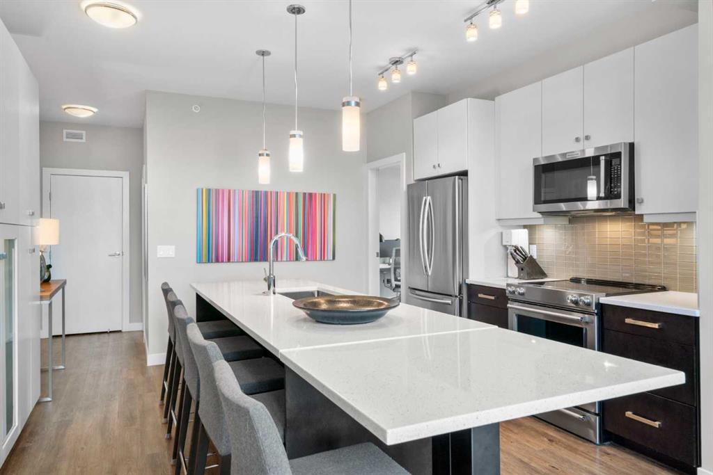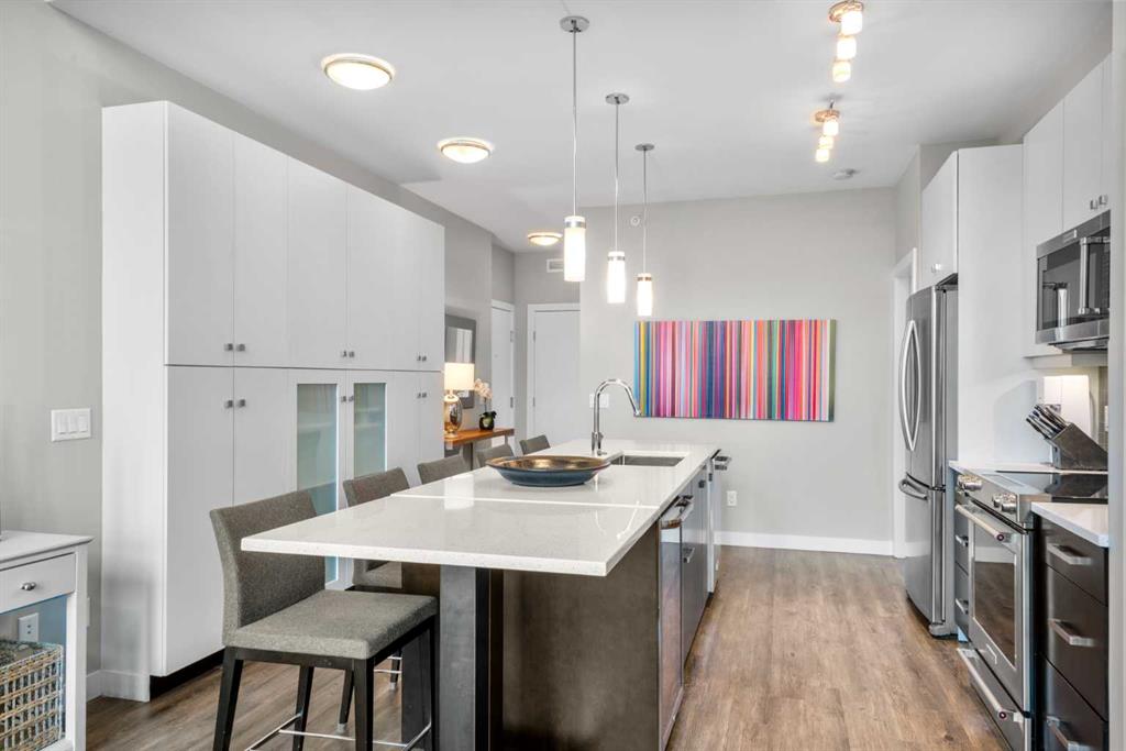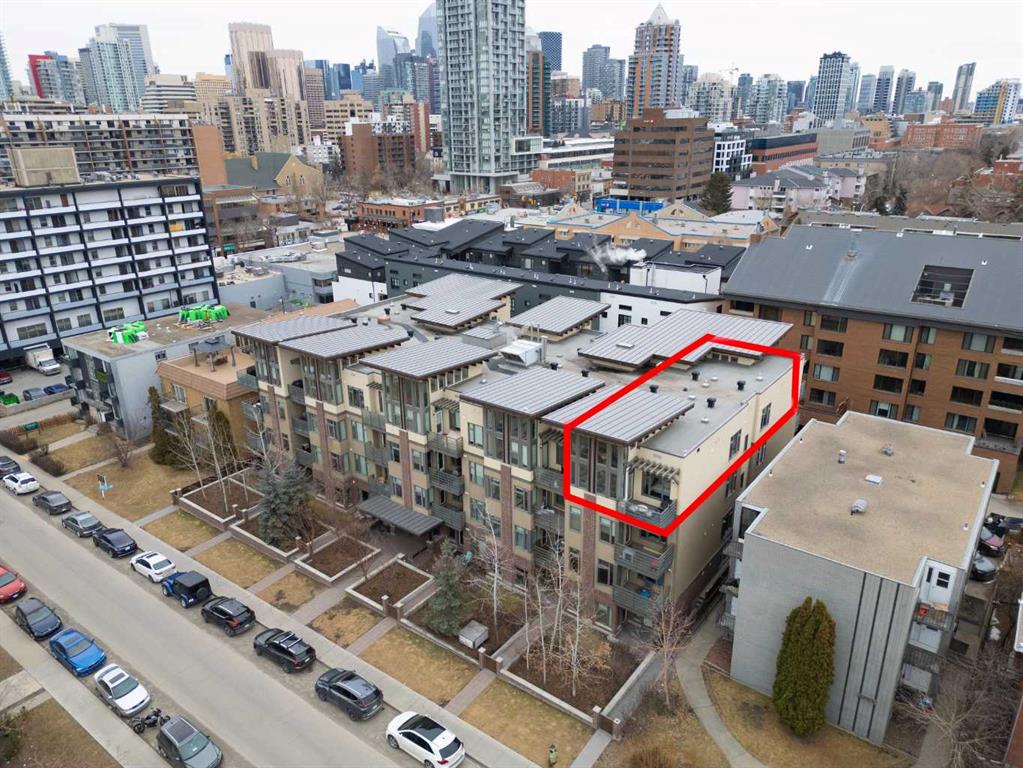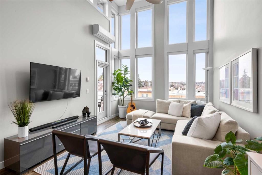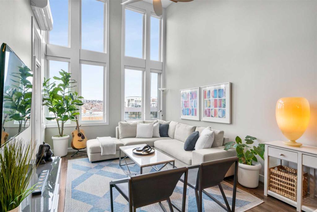 Welcome to one of the most desirable residences in the building, an exceptional two-bedroom PENTHOUSE SW corner unit in Lower Mount Royal just steps from vibrant 17th Avenue. Privately positioned on the top floor, this home enjoys premium west exposure with dramatic 15+ ft vaulted ceilings and floor-to-ceiling windows that fill the space with natural light. Extensively upgraded and impeccably maintained, this home showcases wide plank flooring, designer lighting, and a bright open concept layout ideal for b...