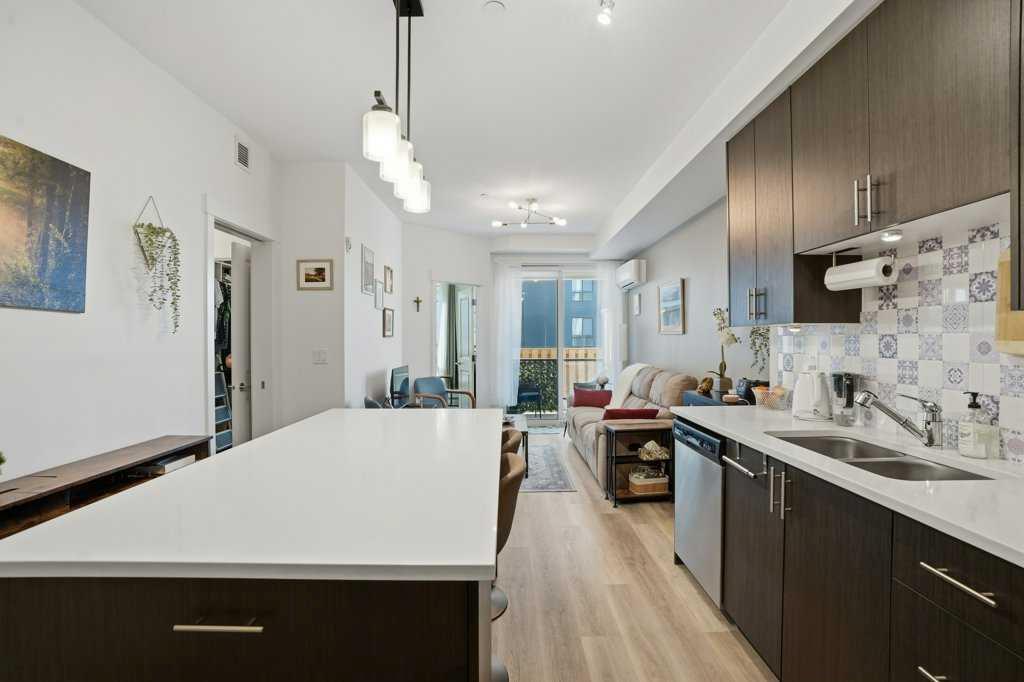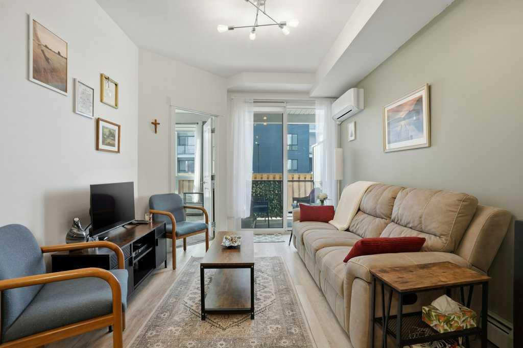Modern Comfort & a Prime Location. Discover this stylish two bedroom condo in the heart of Sage Hill, designed for both comfort and convenience. The open-concept layout welcomes you with a spacious foyer that flows seamlessly into the kitchen, living area, and the private west facing balcony, ideal for entertaining or relaxing at home. Enjoy a bright, neutral color palette, durable vinyl plank flooring, air conditioning, luxurious quartz counter tops and stainless-steel appliances. The unit features 9 foo...