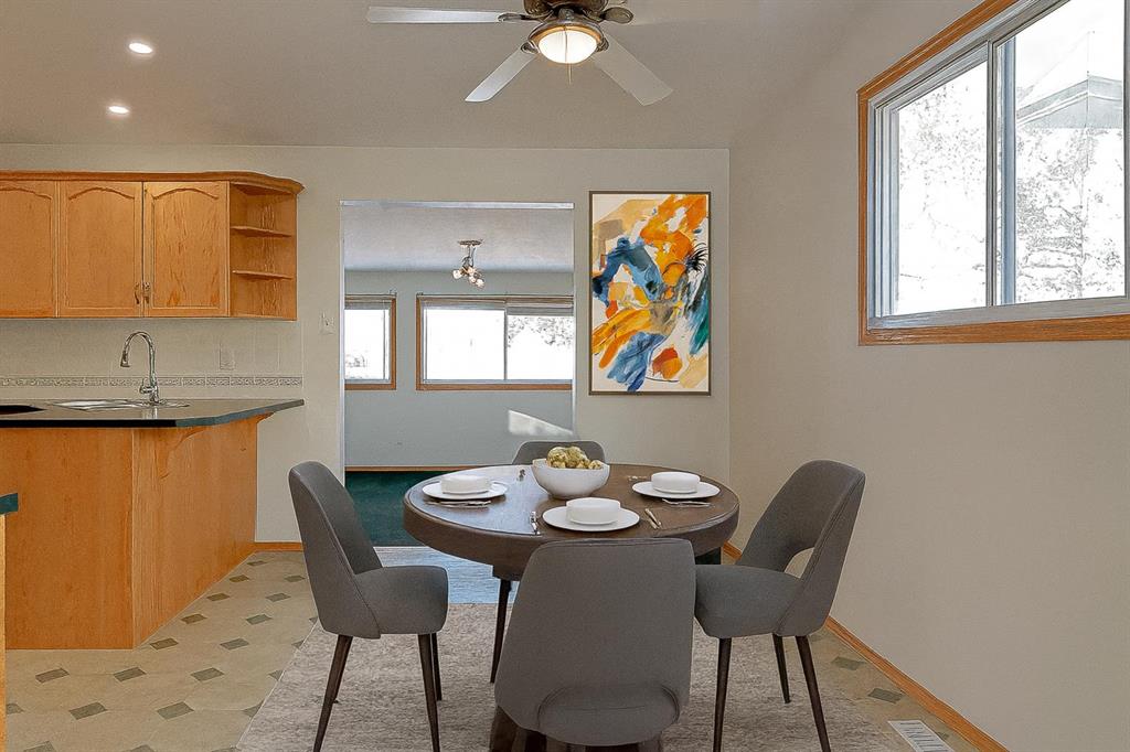 Welcome to this 5 bedroom, 2 bathroom home with an 18x24 detached garage, backing onto a greenspace/park. This bungalow offers plenty of windows and natural lighting with two family/living rooms on the main floor, one boasts a gas fireplace. Spacious kitchen offers tons of cabinet and counter space and includes a breakfast bar and a generous dining area. There are 3 bedrooms upstairs, (the primary bedroom has double closets) and a 4 pc bathroom with a jetted tub. The basement includes a 3rd living area, 2 m...