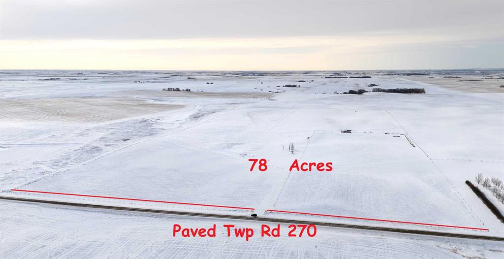 Country Quiet, City Close! 78 Acres on PAVED Township Road 270 just east of Airdrie, Alberta. Combination of hay and pasture, with nice elevated building sites with Mountain, City and country views. Quick access to Airdrie, CrossIron Mills and Calgary. Ideal for quiet country living and home based business (by permit), A-SML Agricultural, Small Parcel District. 1,300' frontage on Township Road 270. East from Airdrie on Yankee Valley Boulevard/Township Road 270 past Airdrie Airpark and past Range Road 2...