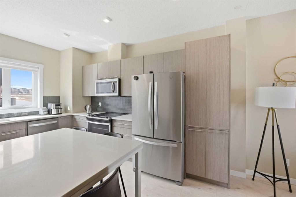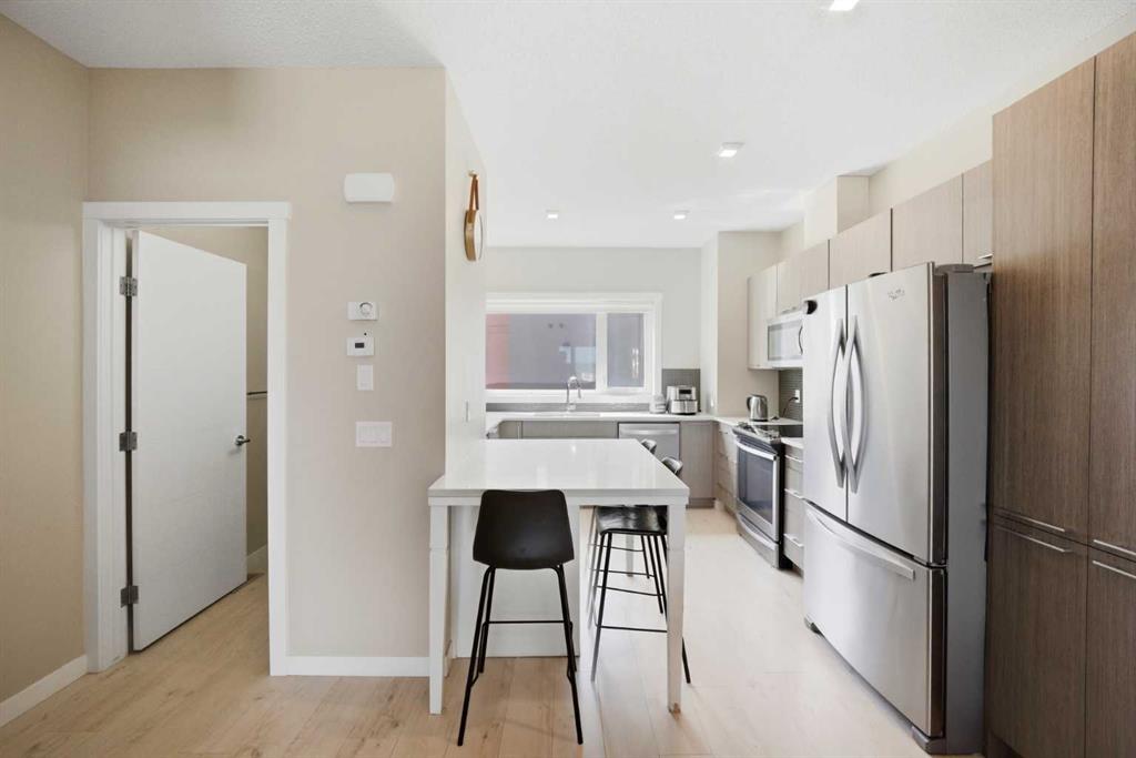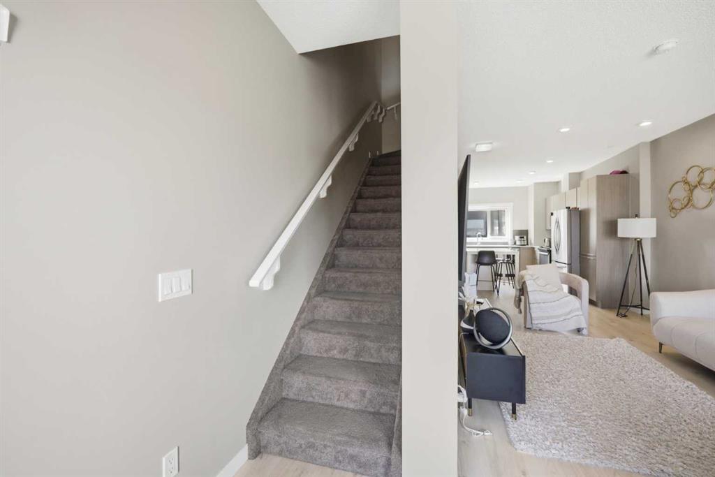 Welcome to this beautifully designed executive 2-bedroom, 2.5-bathroom townhome in the sought-after community of Sherwood NW Calgary. Showcasing a stylish exterior with a sophisticated blend of Hardie board, stucco, and brick accents, this home offers timeless curb appeal paired with thoughtfully curated modern interior finishes throughout. Step inside to discover a bright and functional open-concept main floor featuring soaring ceilings, large windows, and abundant natural light thanks to the desirable ea...