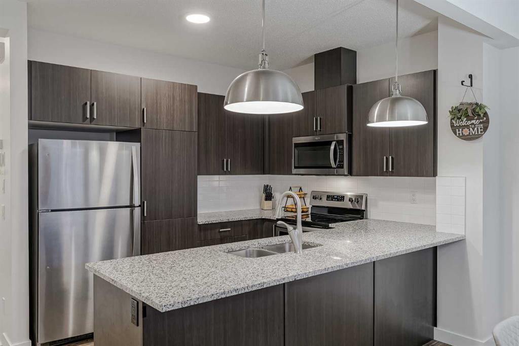 This beautifully designed townhome stands out from the rest — offering true main-floor living where your kitchen, dining, and living areas are all on the same level you enter from the garage. No stairs to climb just to reach your main living space! Step inside to discover an inviting open-concept layout featuring 9-foot ceilings, stylish lighting, and a seamless blend of tile and laminate flooring. The modern kitchen shines with stainless steel appliances, granite countertops, subway tile backsplash, and a ...
